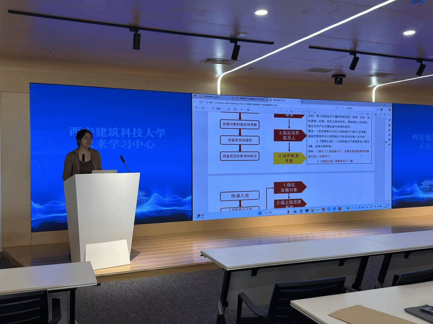接下来,张润华以“如何成为一名共产党员——发展党员基本程序”开启培训系列的第一课,详细描述了发展党员基本程序中的注意事项。通过入党流程知识理论学习让广大学员更加深入了解了中国共产党严格的入党流程,这既是对申请人的全面考验,也是党组织保持先进性和纯洁性的重要保障,激励着每一位有志加入党组织的同志,以党员标准严格要求自己,在奋斗中践行初心使命。